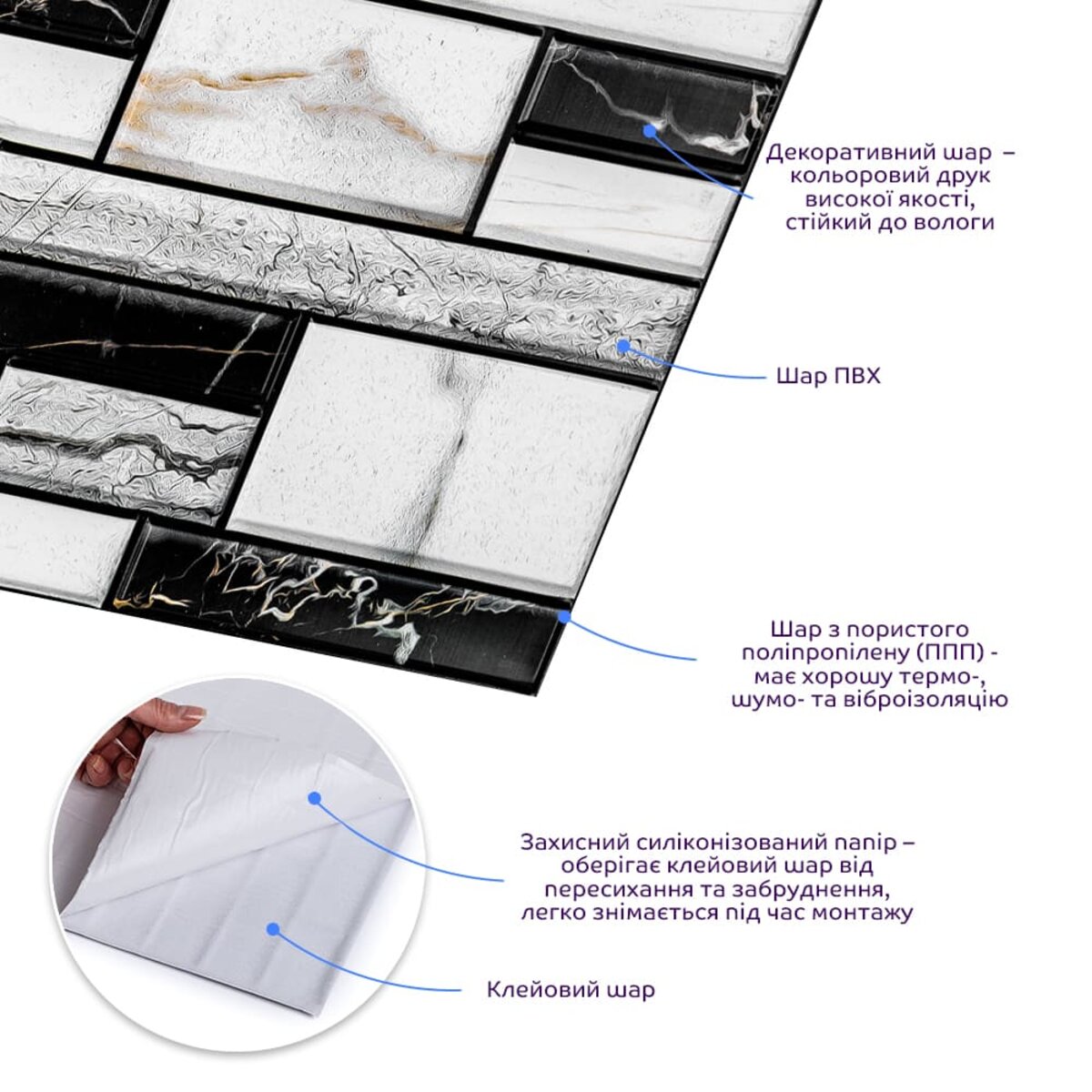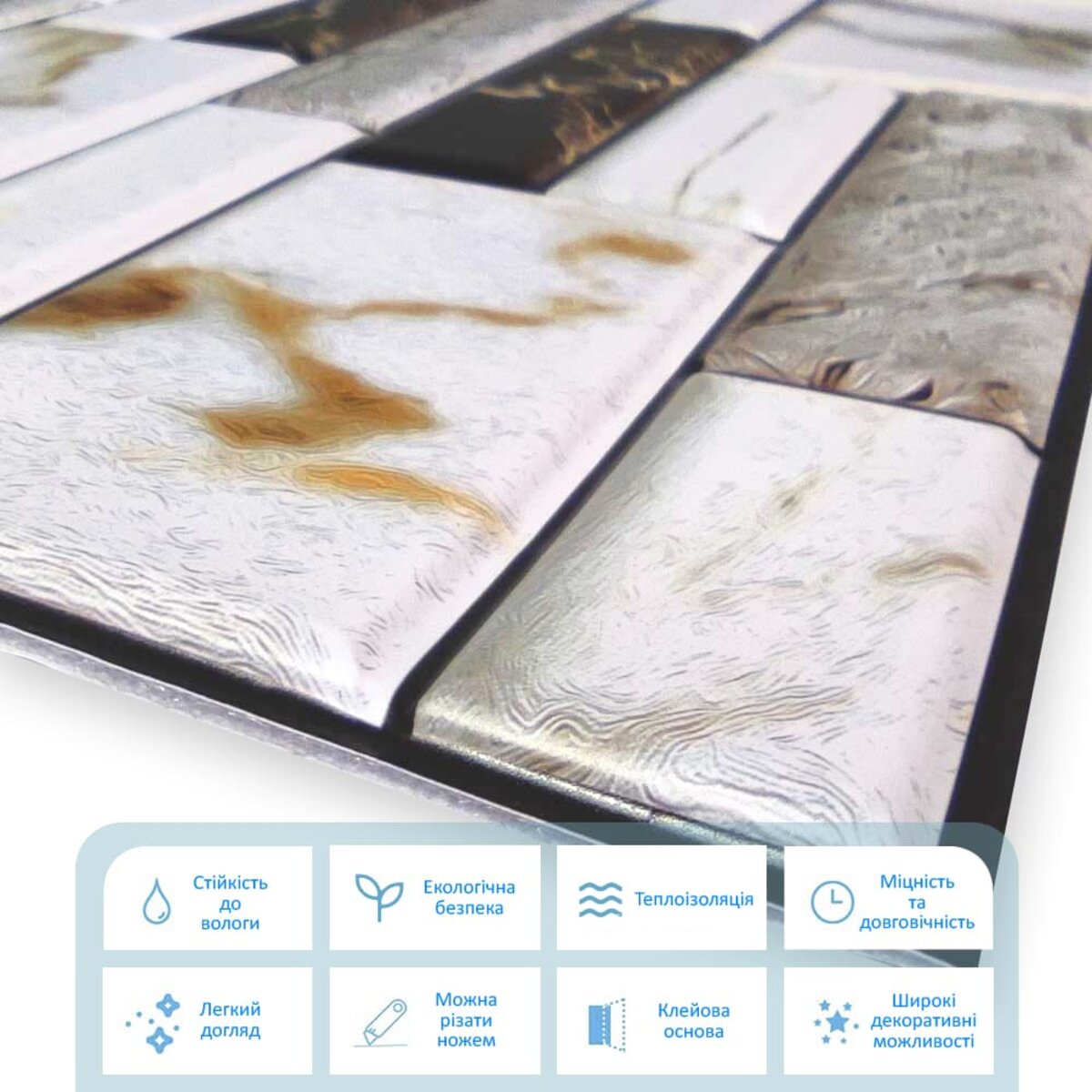 Самоклеючі декоративні панелі СПП – новинка у світі самоклейок. Це невеликі плитки із трендовим малюнком під натуральні матеріали. Прозорий захисний шар із поліуретану захищає покриття від стирання та механічних пошкоджень.
