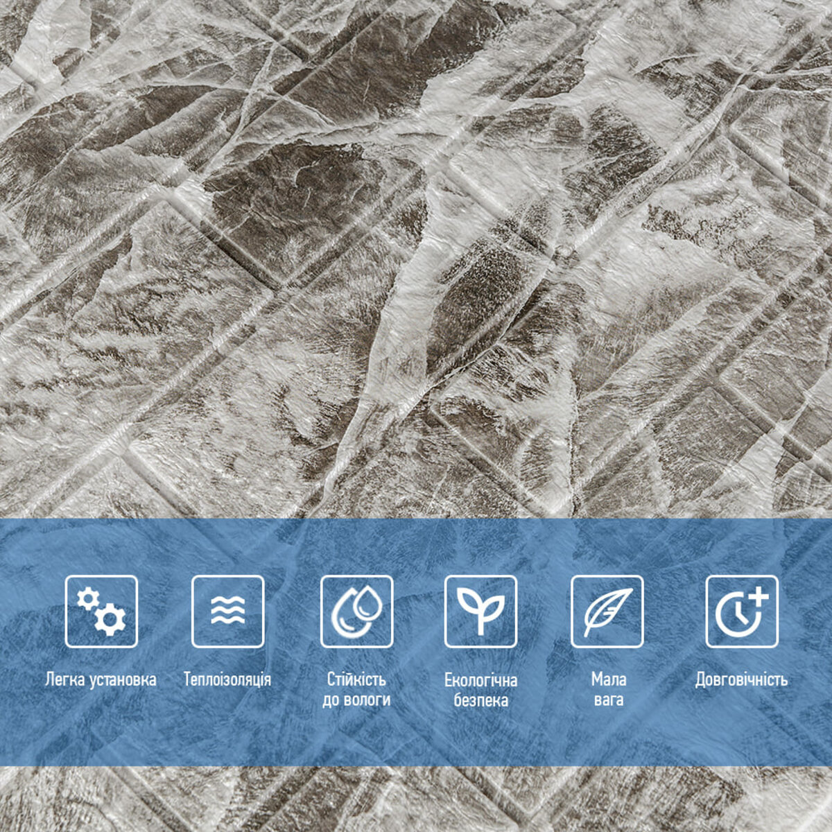 Декоративна 3D панель самоклейка під цеглу Чорний мармур 700х770х5мм (061-5)