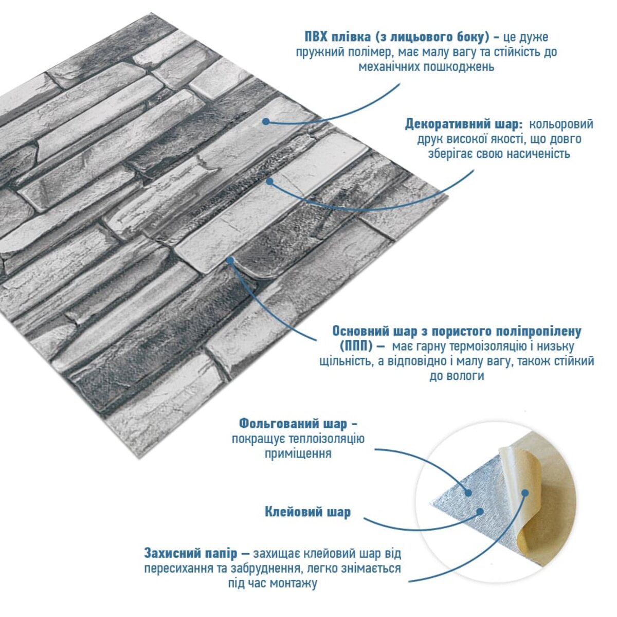 - Легкість монтажу: наявність клейового шару дозволяє встановити панелі без необхідності застосування додаткових матеріалів.