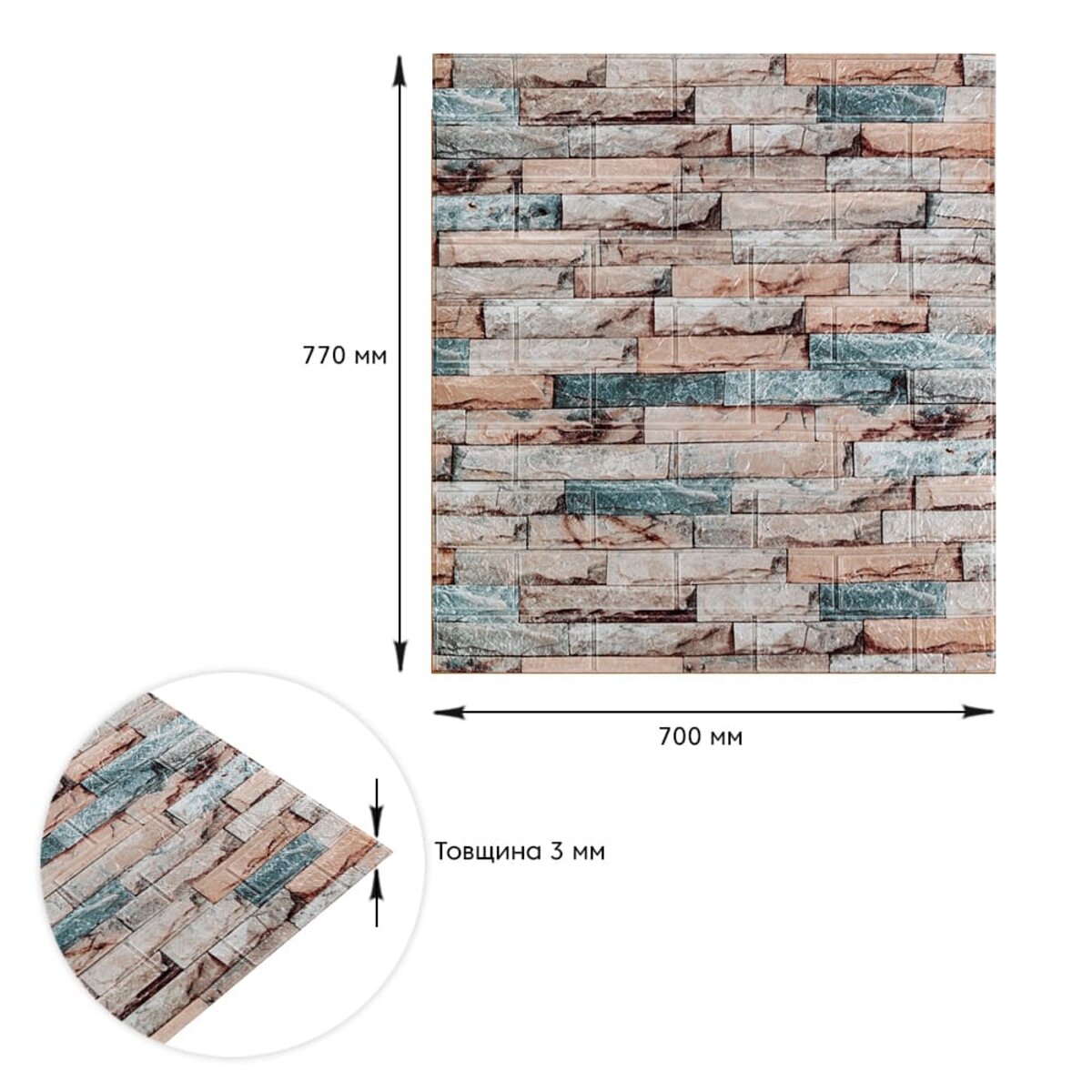 3D панелі самоклеючі – декоративне покриття для стін, виконане з легкого та міцного матеріалу – пористого поліпропілену (ППП). Основна особливість – рельєфний малюнок у вигляді цегли у широкому різноманітті кольорів та наявність клейового шару, що дозволяє встановити панелі без необхідності застосування додаткових матеріалів.