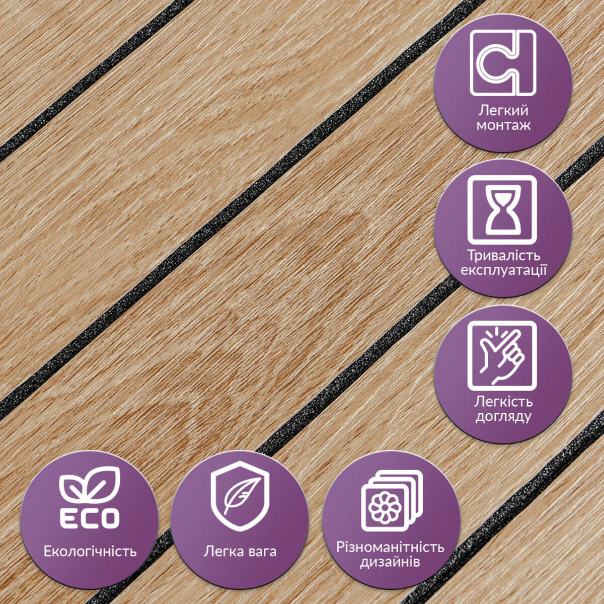 • Легкий догляд: Вінілові рейки легко миються, не вимагають спеціальних засобів для очищення і не вбирають бруд.