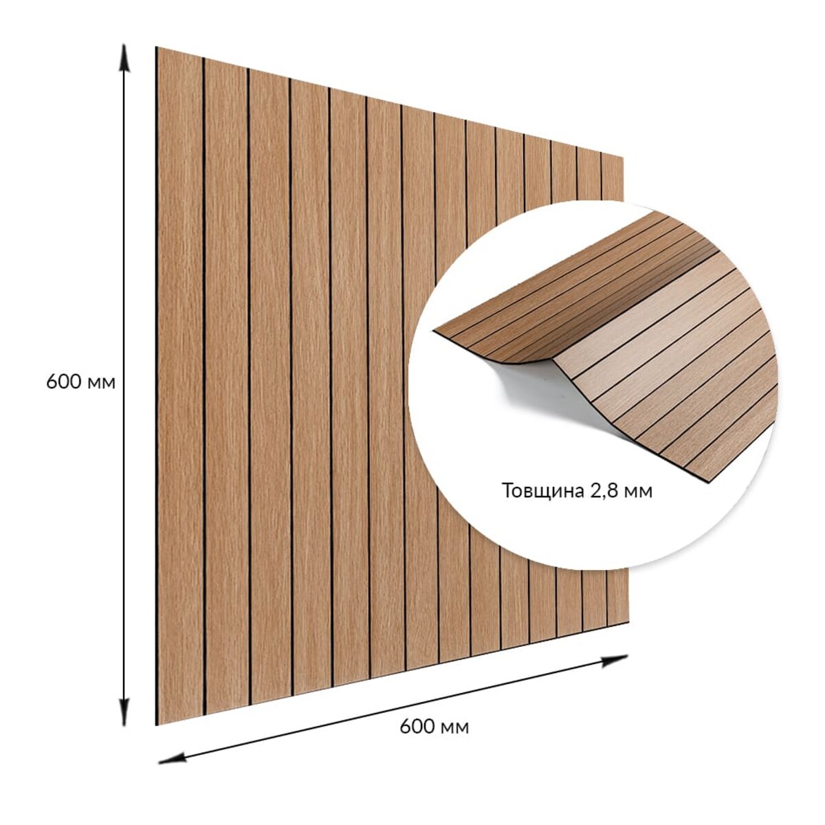 Площа покриття: 600х600 – 0,36 м², 600х3000 мм – 1,8 м²