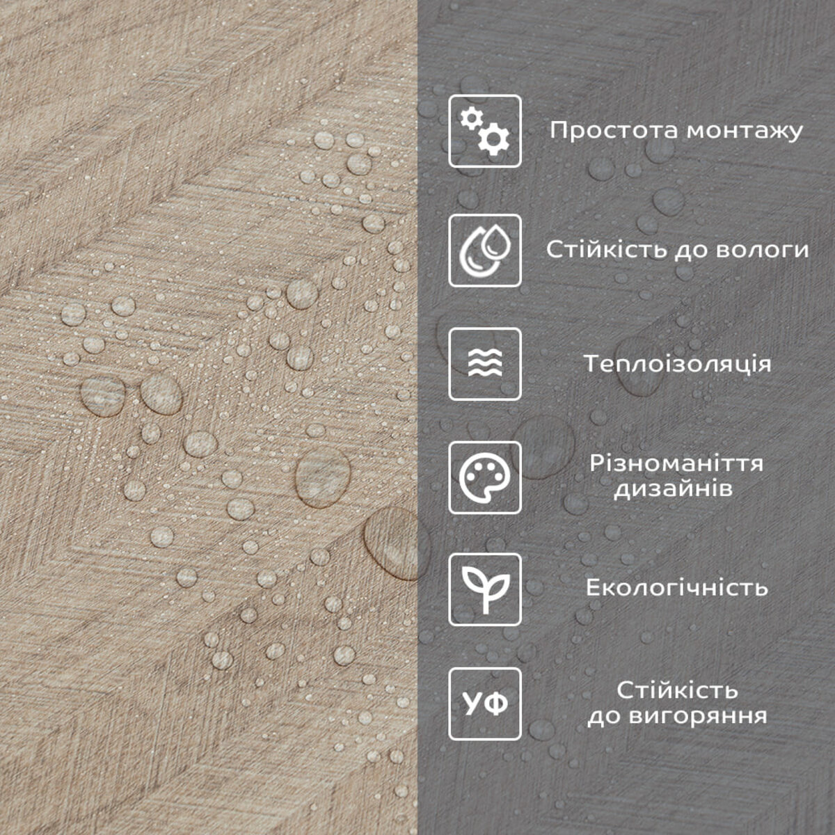 • Легкий догляд: вініл легко очищається і не вимагає спеціальних засобів для чищення.