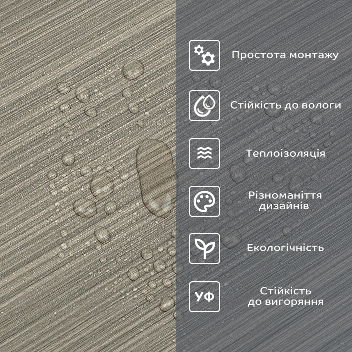 • Легкий догляд: вініл легко очищається і не вимагає спеціальних засобів для чищення.