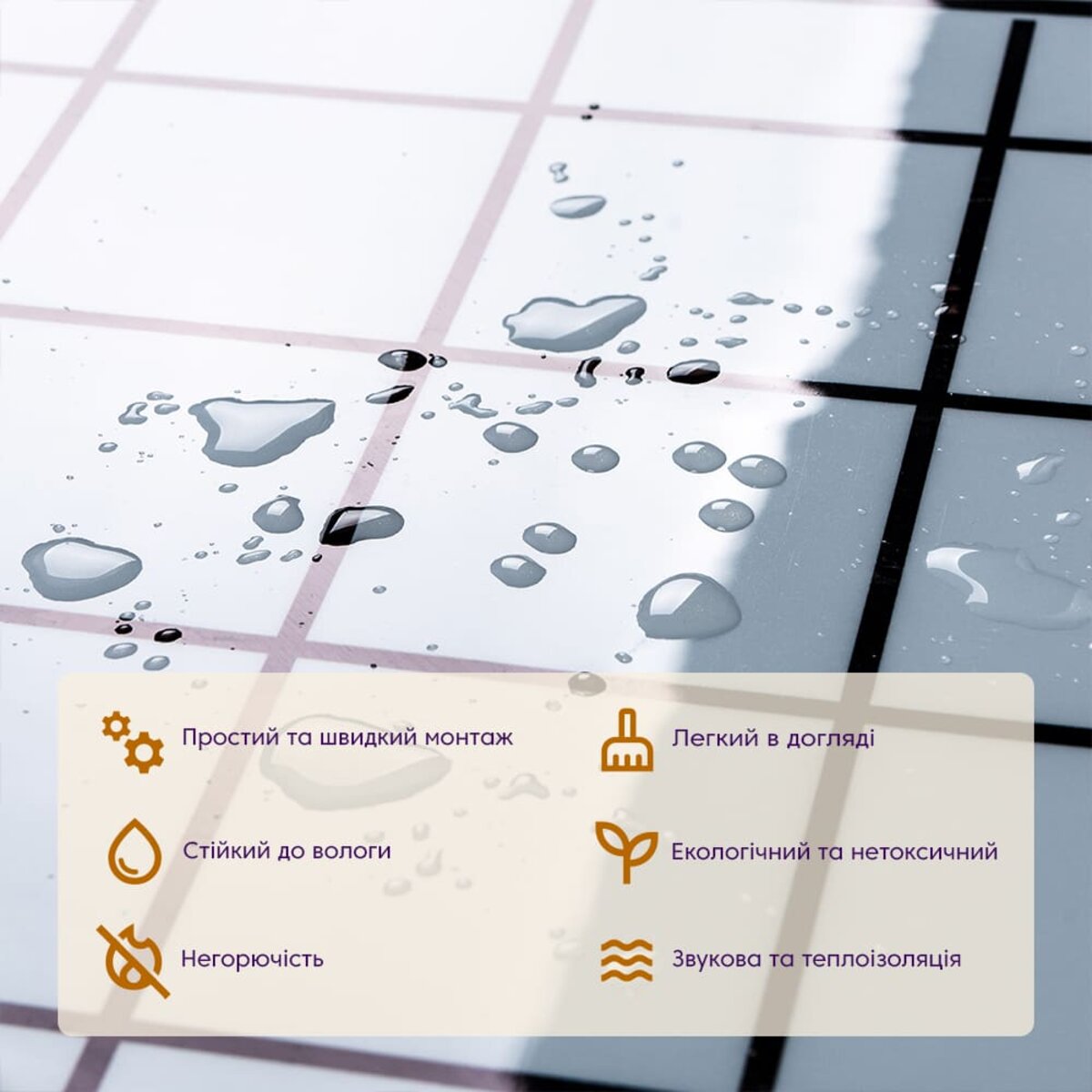 Ізоляція: плитка має тепло та звукоізоляційні властивості;