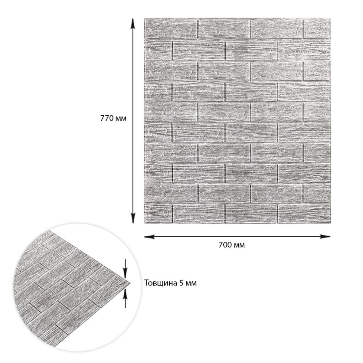 Самоклеюча декоративна 3D панель 700х770х5мм Сіра смужка цегла (183) SW-00000488