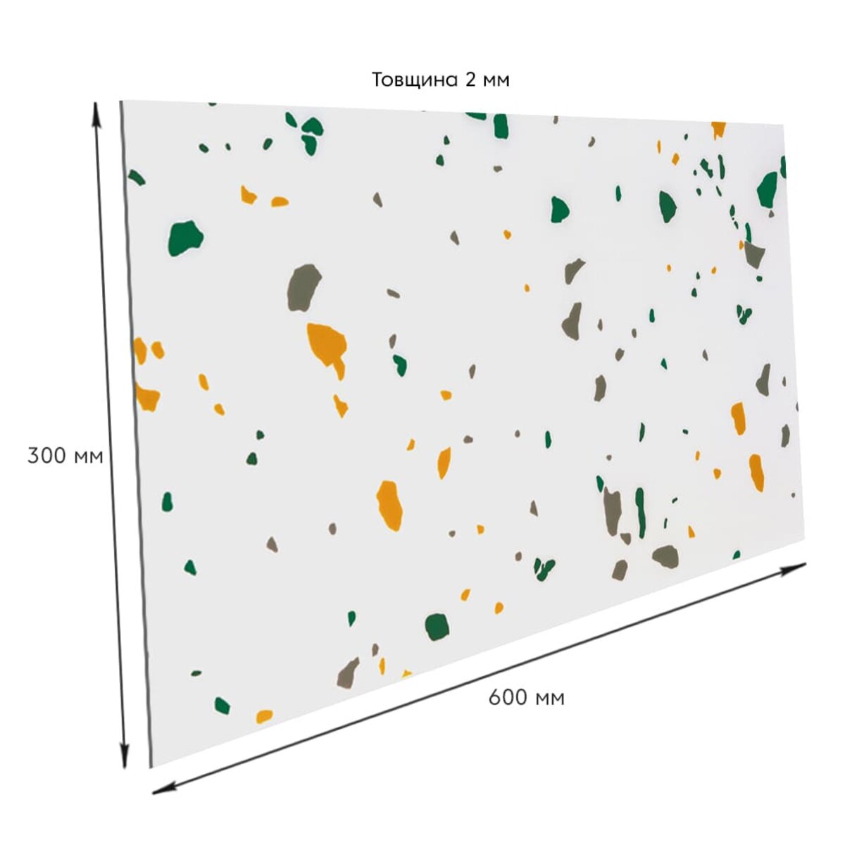 - 60 см х 30 см х 2 мм – 0,18 м2, кількість на 1 м2 – 6 одиниць