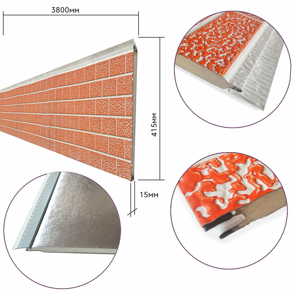 - Дизайн і кольори: панелі представлені в 6 варіантах, включаючи імітацію дерева та цегли, що дає можливість для створення різноманітного зовнішнього вигляду будівель.