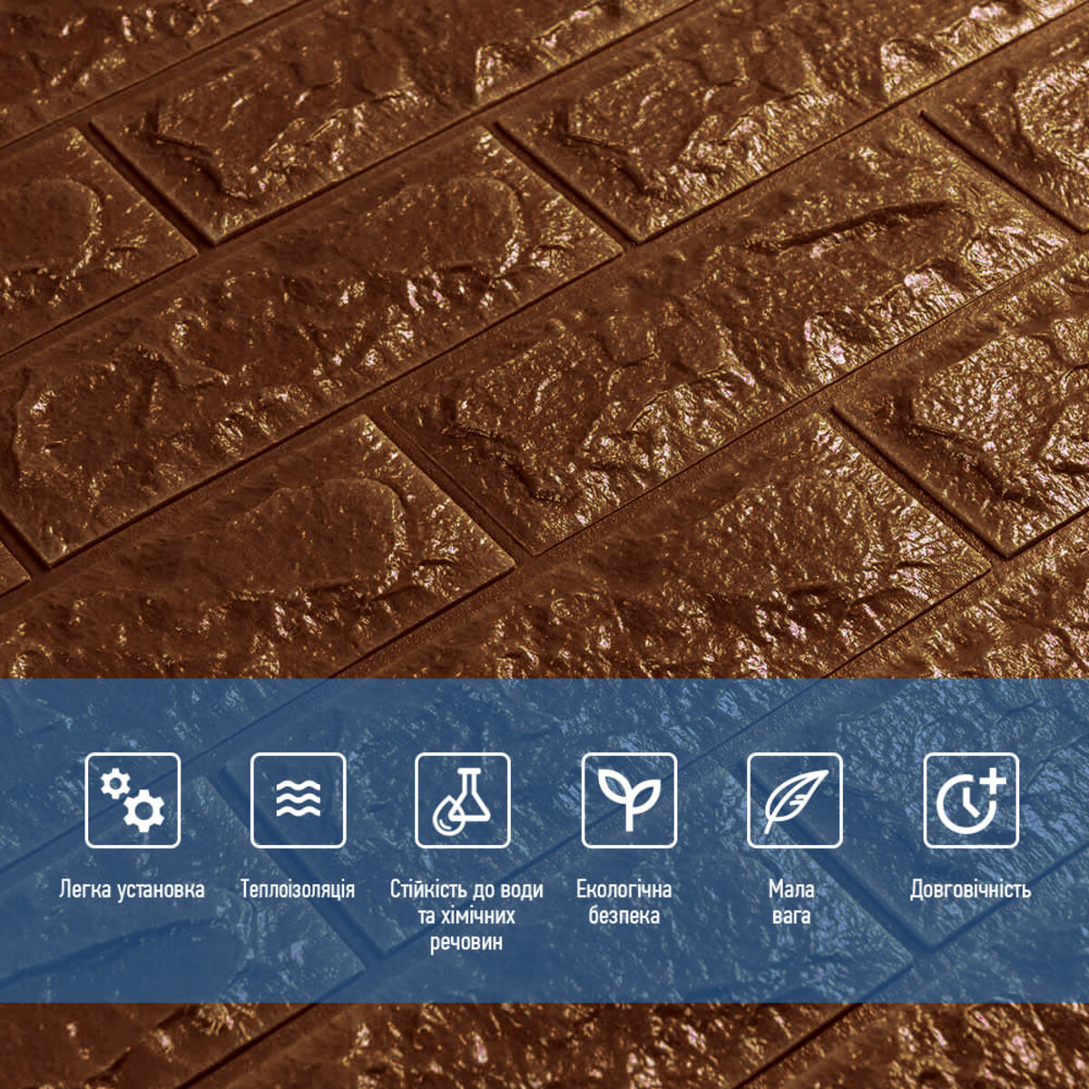 - Легкість монтажу: наявність клейового шару дозволяє встановити панелі без необхідності застосування додаткових матеріалів.