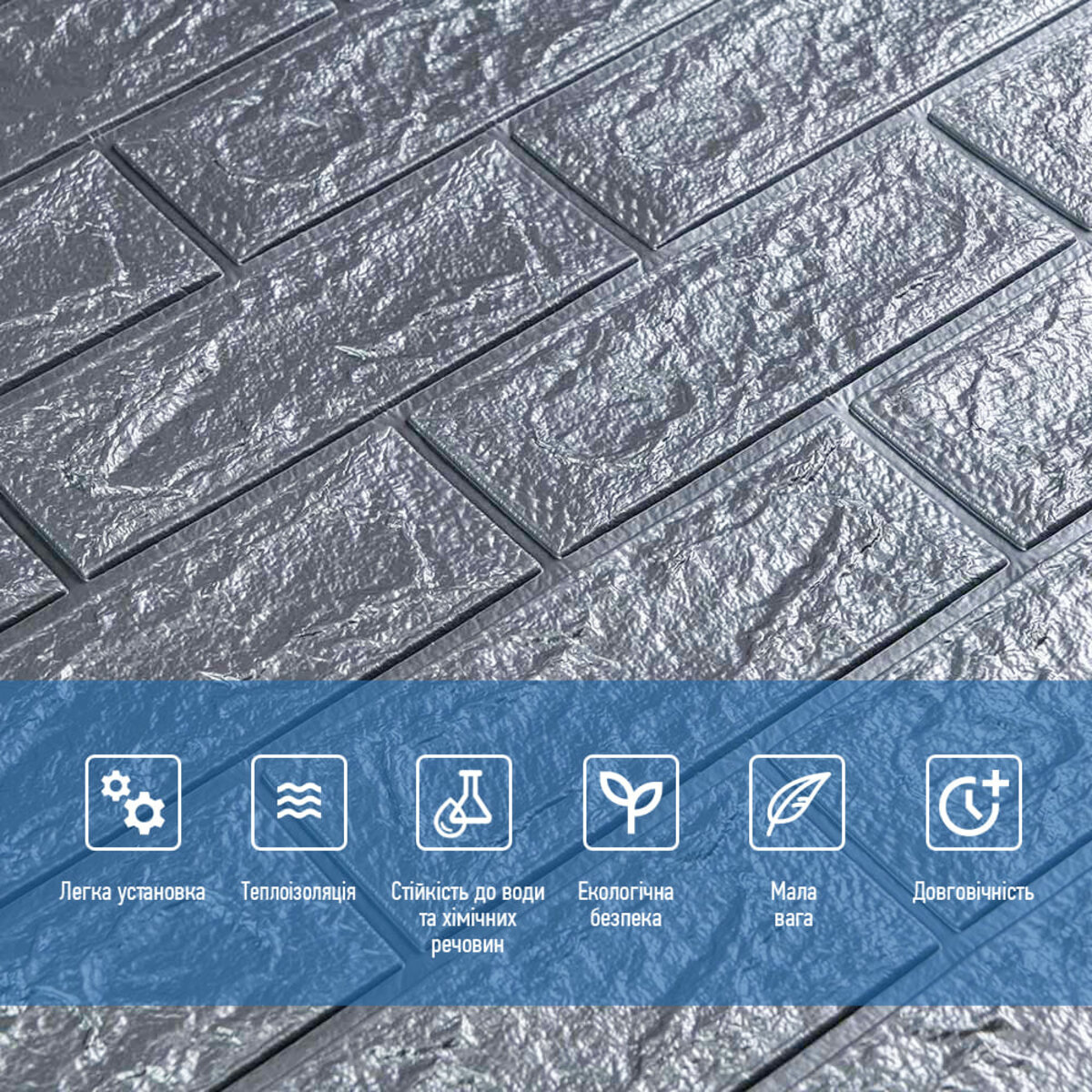 3D панель самоклеюча 700х770х3мм цегла Срібло (017-3) SW-00000230