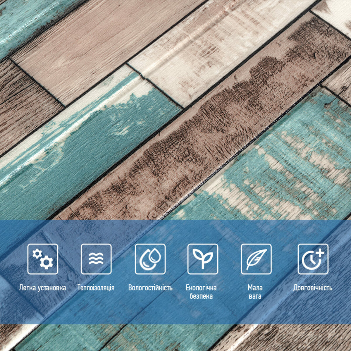Декоративна 3D панель самоклейка під дерево Синє дерево 700х700х6мм (088)