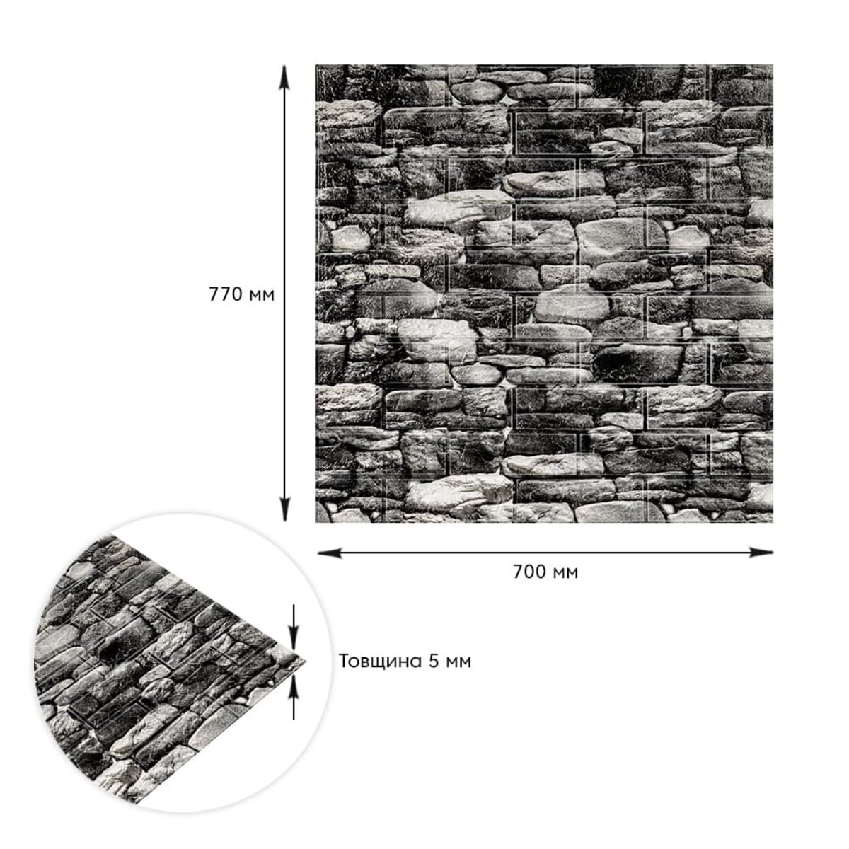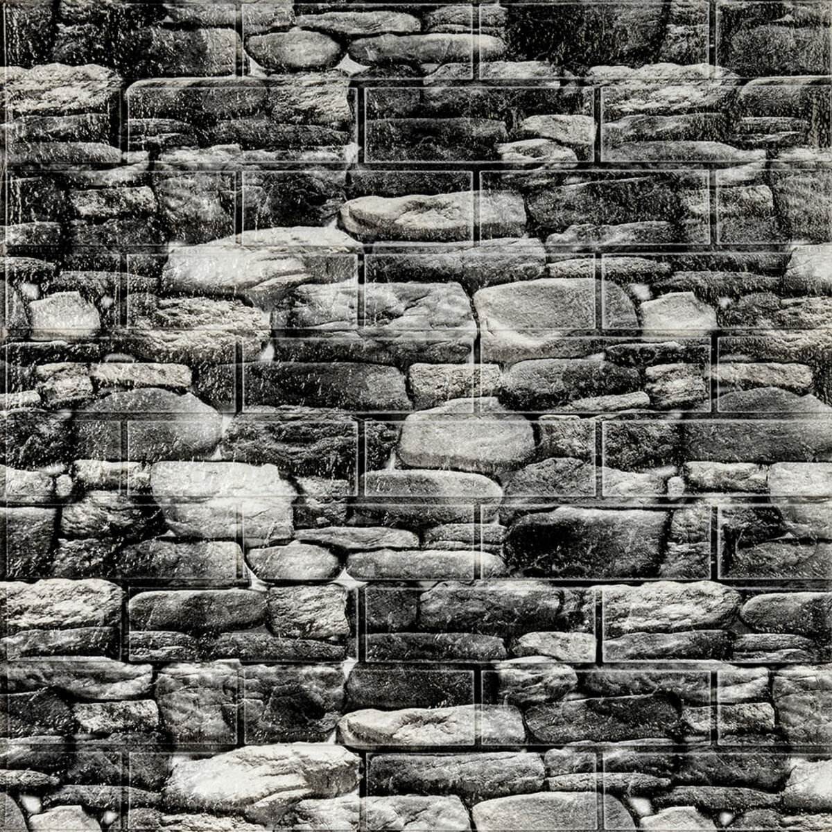 Декоративна 3D панель самоклейка 700х770х5мм Чорний камінь Катеринославський (040) SW-00000483