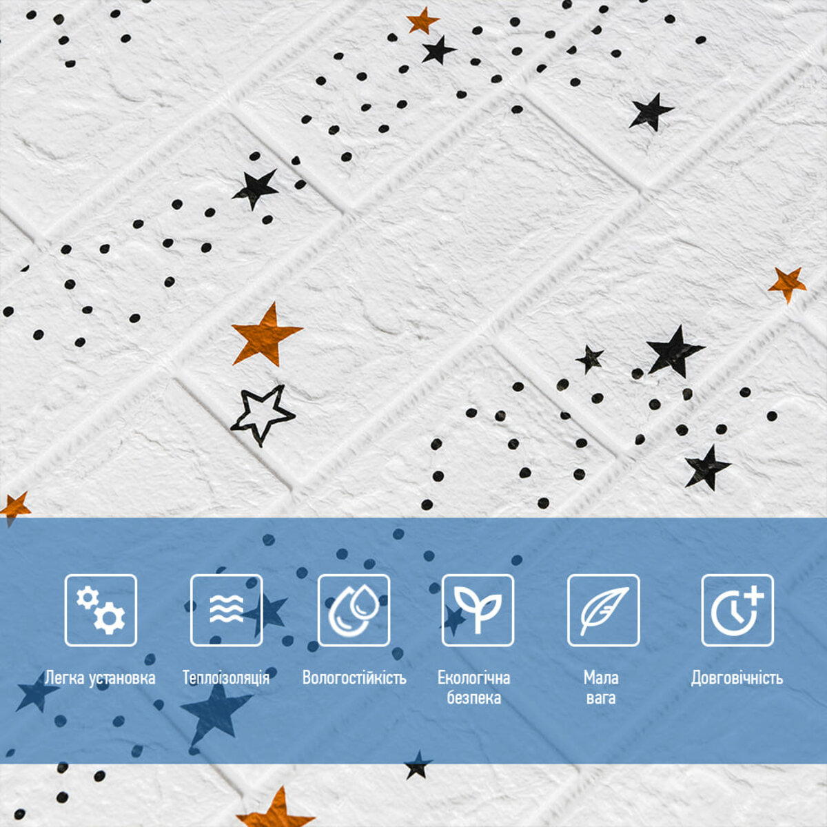 Декоративна 3D панель самоклейка під білу цеглу Зірки 700х770х5мм (021)