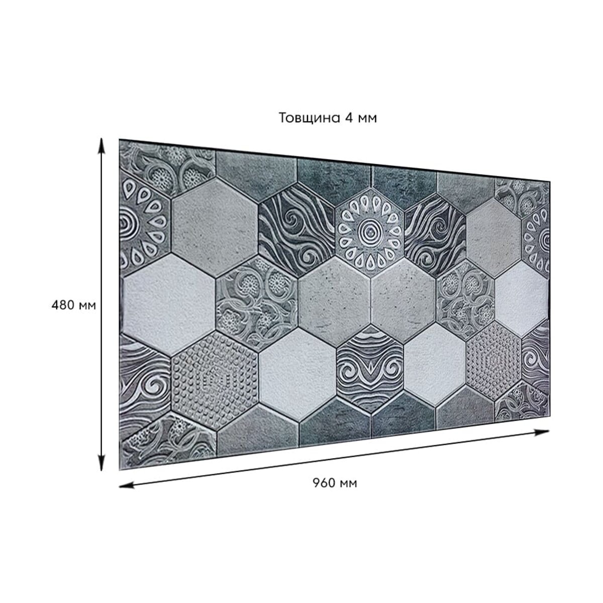 Розмір ПВХ панелі – 960ммх480мм. Товщина – 4 мм.