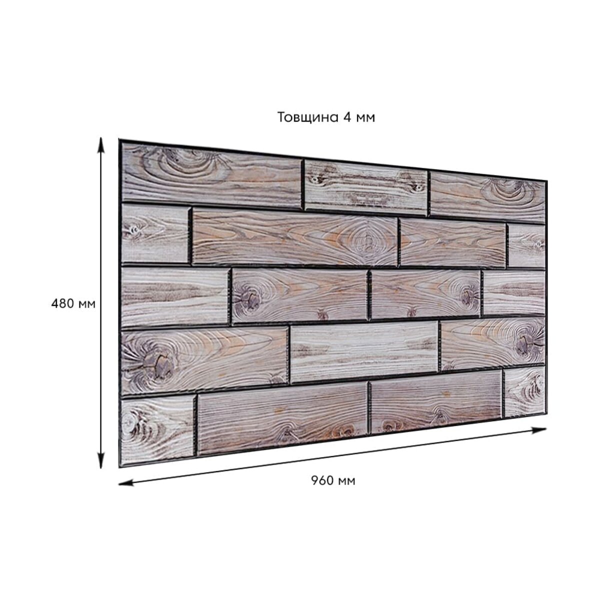 Розмір ПВХ панелі – 960ммх480мм. Товщина – 4 мм.