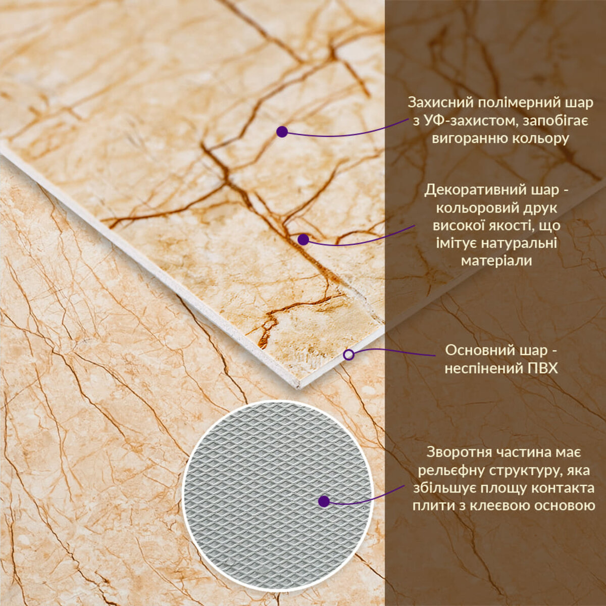 - Імітація натурального матеріалу (мармур, камінь)