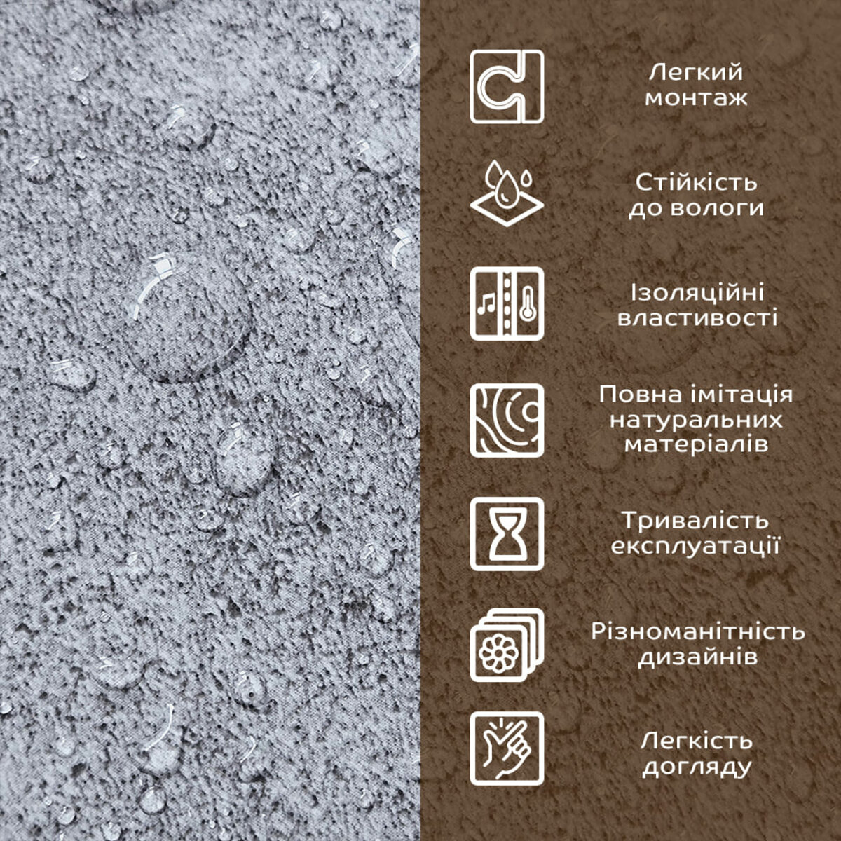 Плити дуже прості у монтажі, практичні у використанні та довговічні. Для монтажу плит Вам буде потрібно: силіконовий або акриловий клей, лобзик (болгарка), рівень, олівець та лінійка.