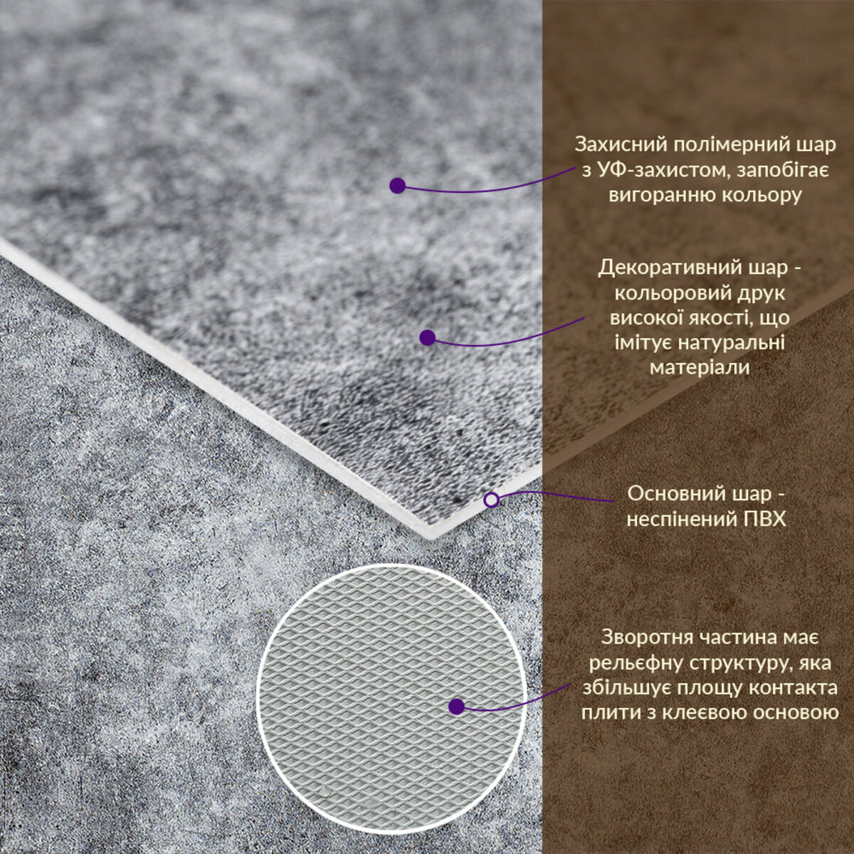 Розмір ПВХ плити – 600ммх600мм. Товщина – 3 мм. Вага листа – 2,4кг