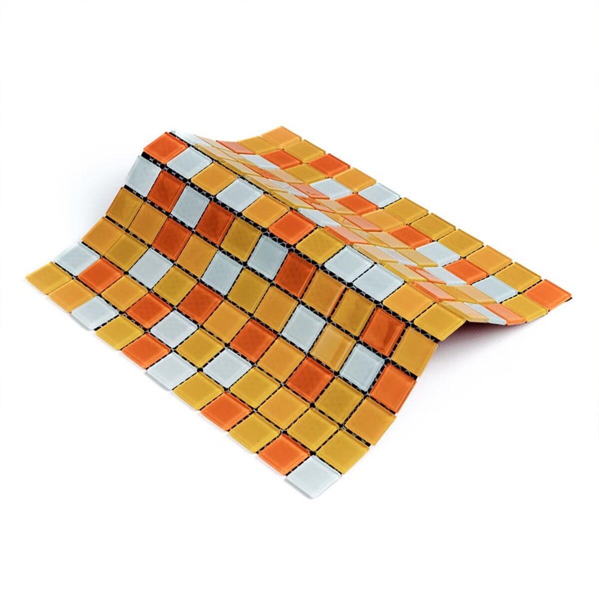 Сітка. Кожен шматочок мозаїки, прикріплений до основи з полімерної або скловолоконної сітки що дозволяє легко монтувати всю плитку як цілісне покриття.