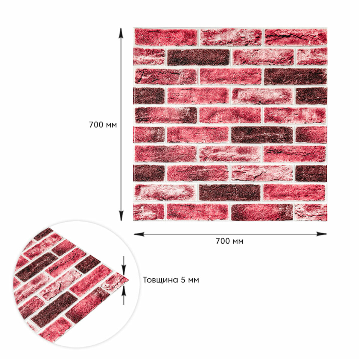 Самоклеюча 3D панель 700х700х5мм Клінкер насичений червоний цегла (416) SW-00001182