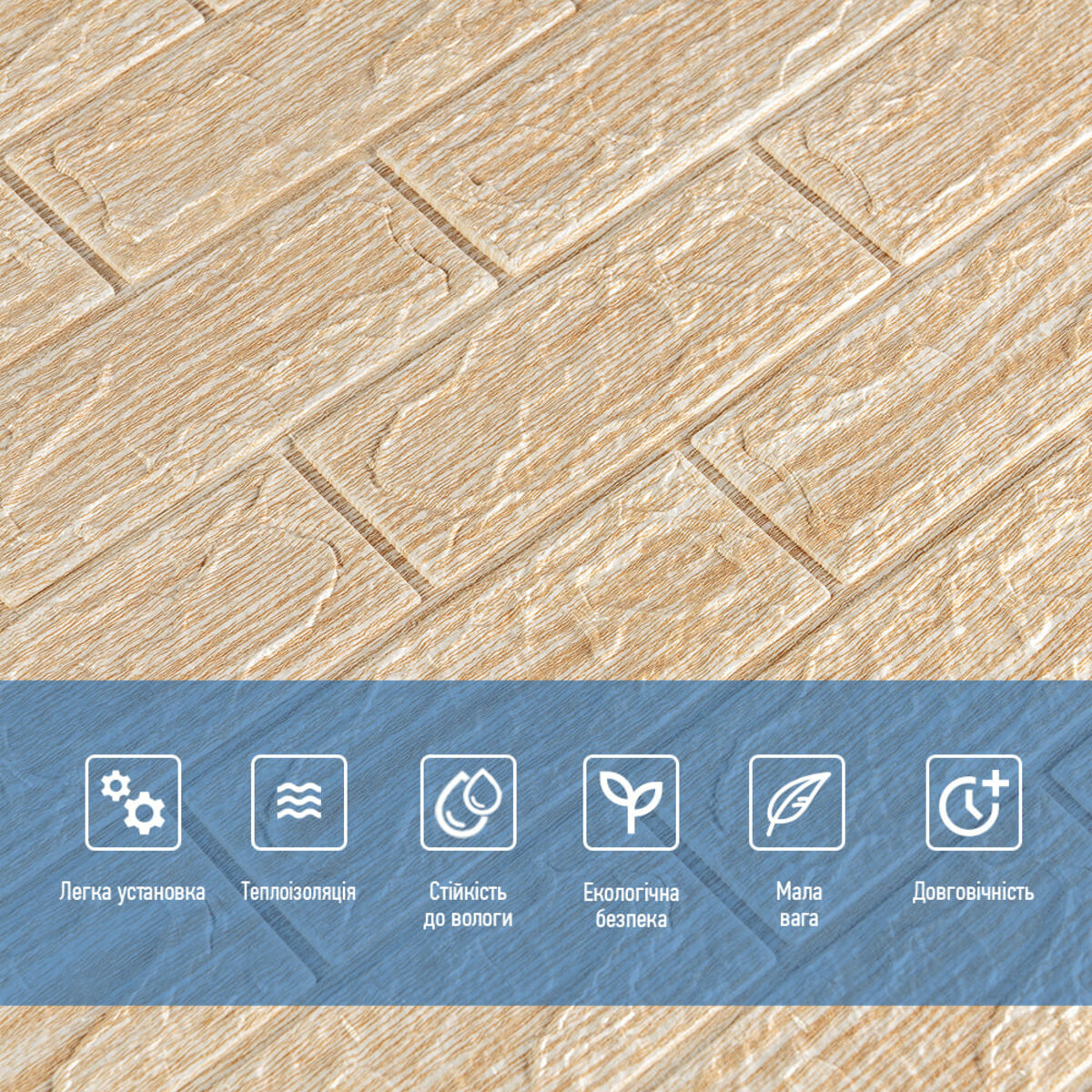 Самоклеюча декоративна 3D панель 700х770х5мм Бежева смужка цегла (184) SW-00000489