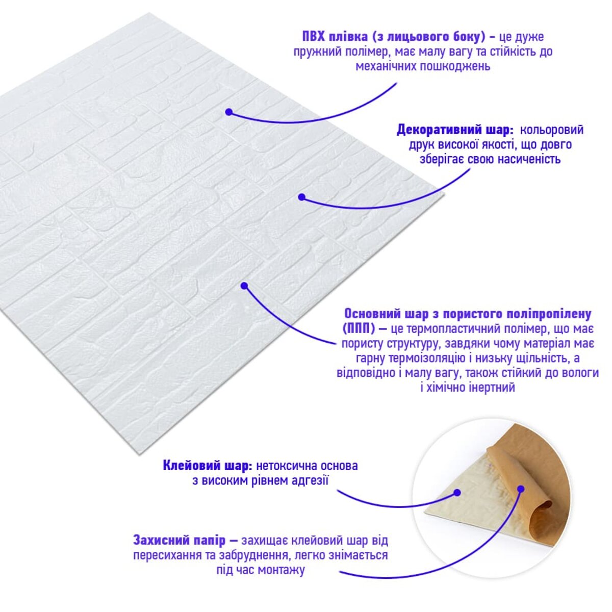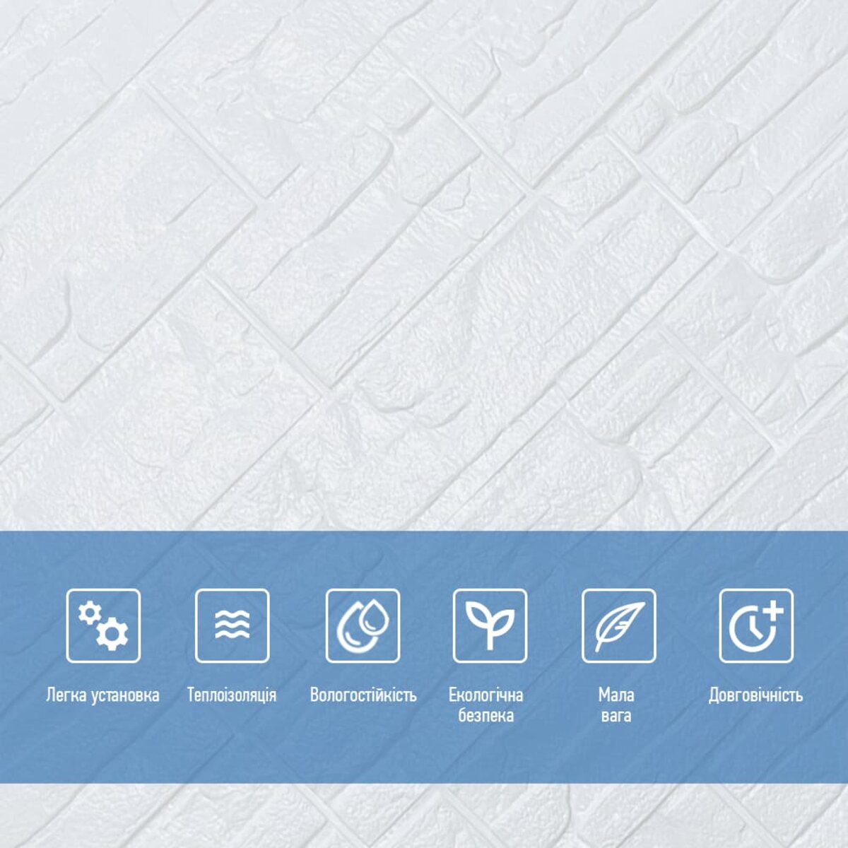 Самоклеюча декоративна 3D панель Камінь біла рвана цегла 700х770х5мм (155) SW-00000484