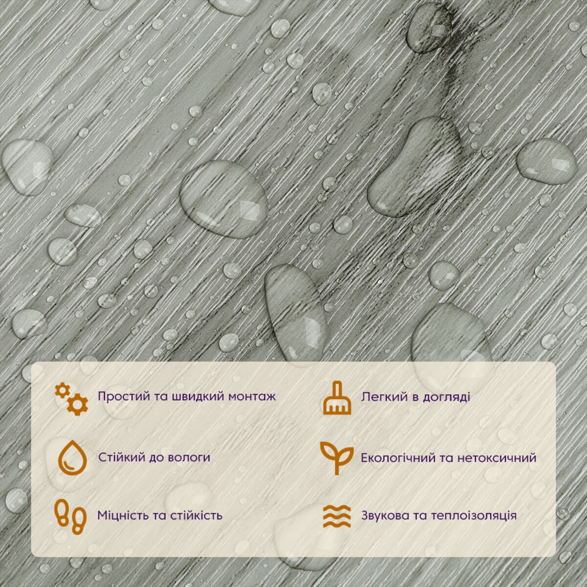 • Стійкість до вологи: вінілова плитка під ламінат стійка до вологи, що робить її відмінним вибором для кухні та інших приміщень з підвищеною вологістю, матеріал стійкий також до впливу пари та до появи плісняви.
