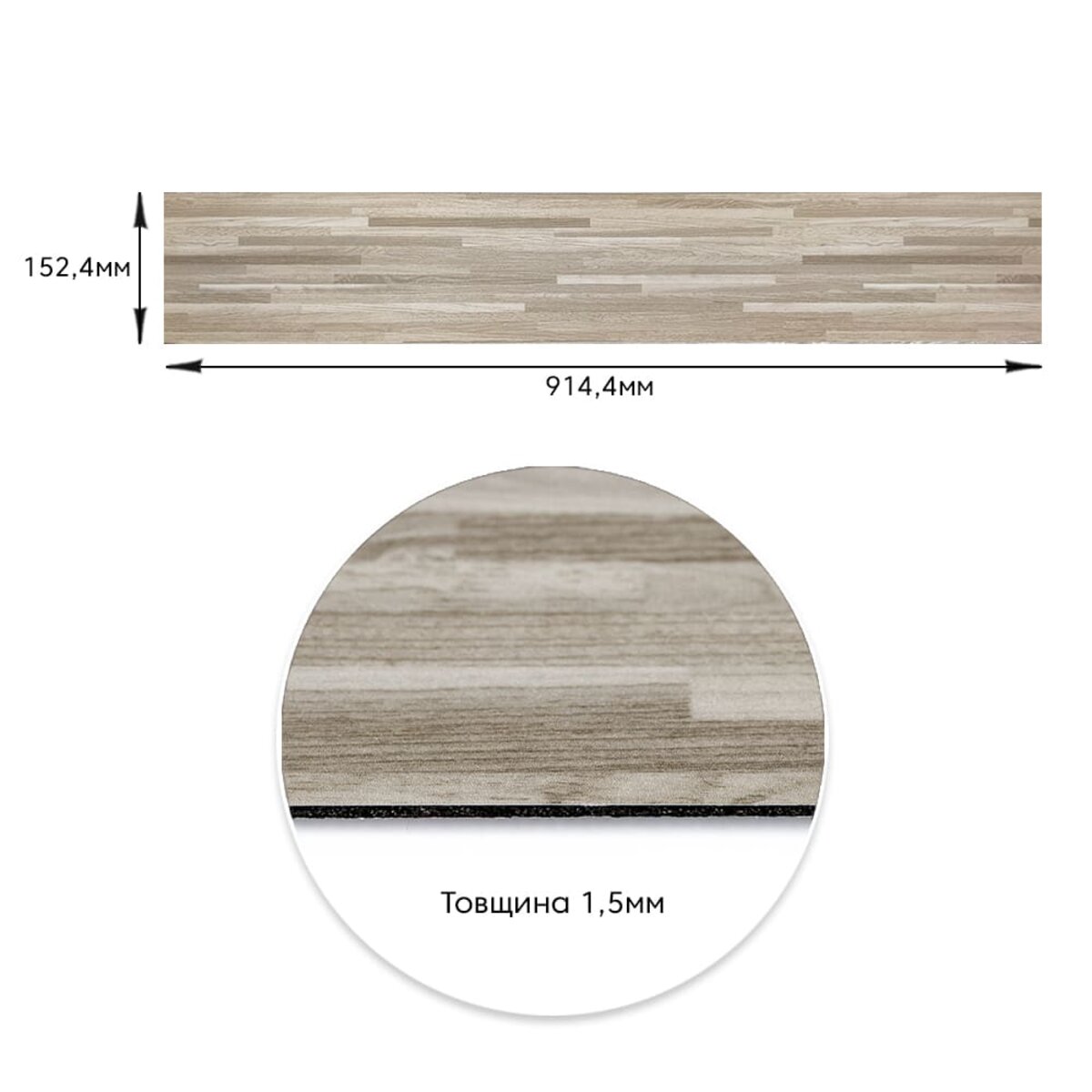 Площа покриття: 152 х 914 мм – 0,138 м², кількість на 1 м² – 8 одиниць